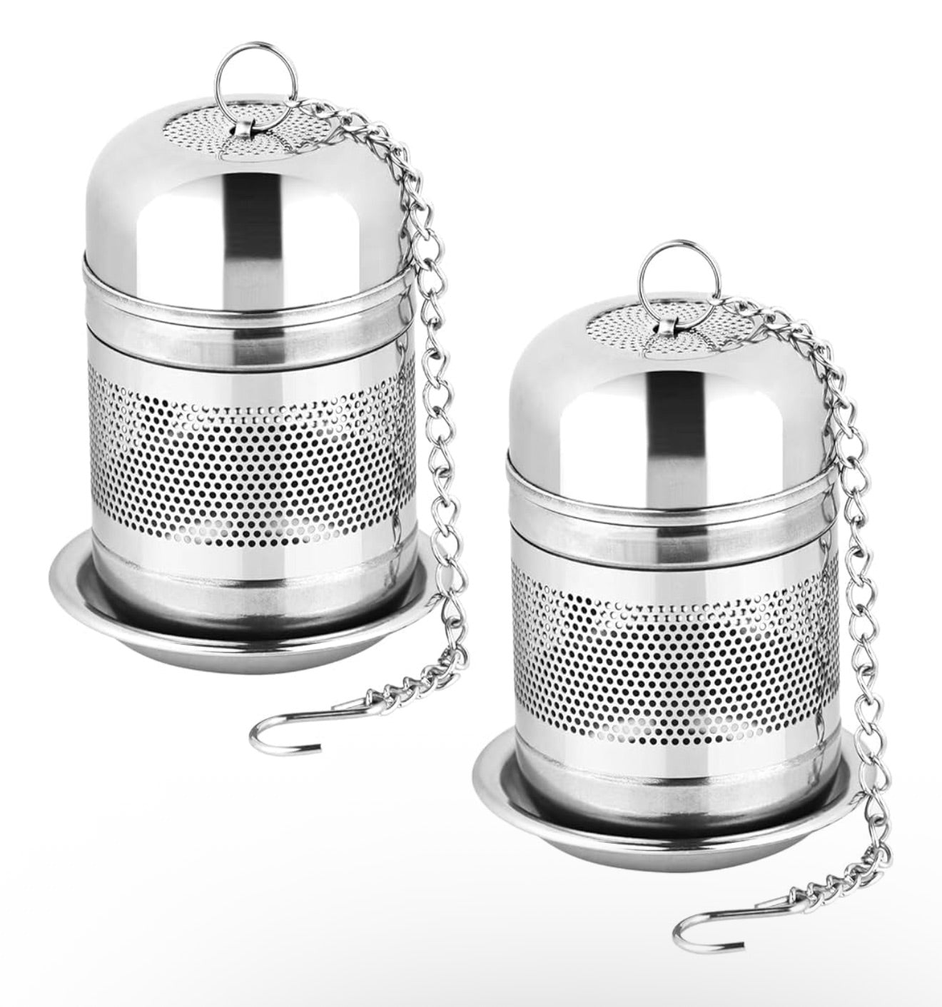2 PCS - Stainless Steel 2 Tea Infusers with Lids & Chain Hooks for Loose Leaf Tea
